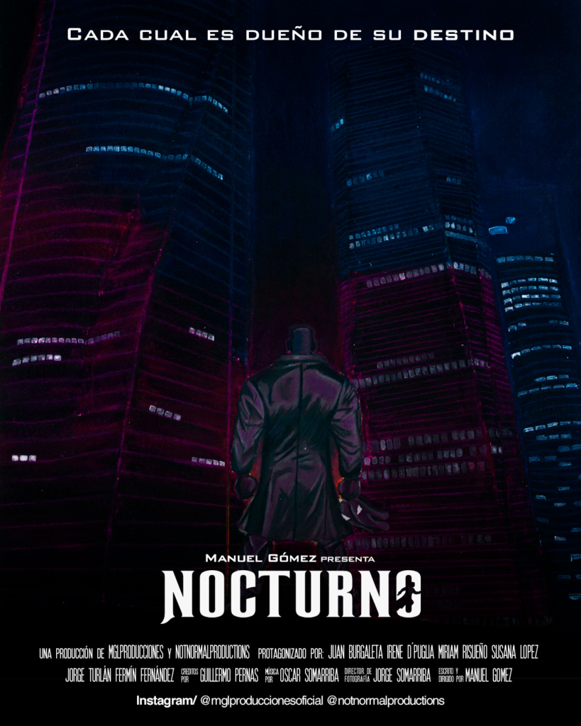In 2019, while at university, I direct Nocturno. Following the story of Raúl, a youngster who comes up with the idea of becoming a superhero, despite having no superpowers, to hide his identity and investigate the mysterious suicide of the girl he is in love with.